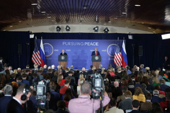 当地时间8月15日,美国总统特朗普和俄罗斯总统普京在阿拉斯加举行了会晤。会晤之后,双方举行了联合记者会。
